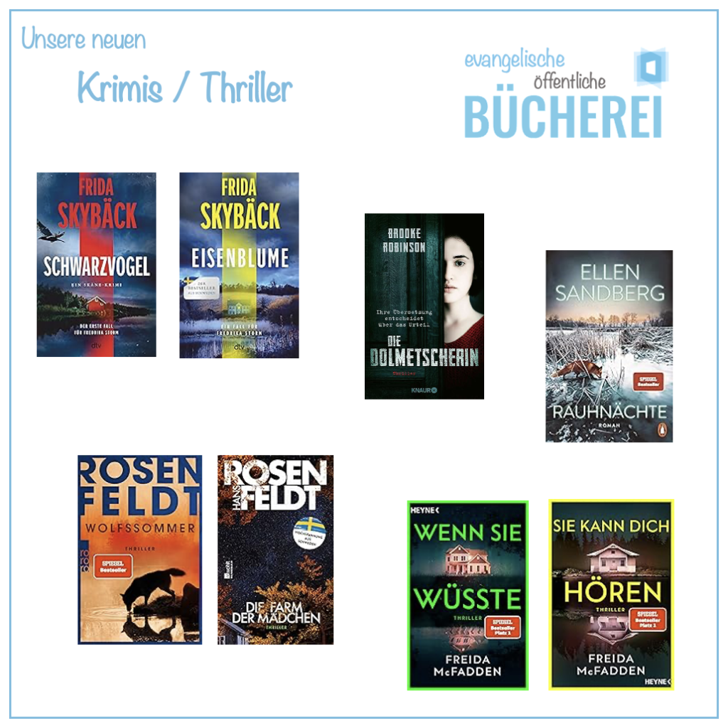Kinder-/Jugendbücher Februar 2025Kinder-/Jugendbücher Februar 2025_ListeRomane Februar 2025Romane Februar 2025_ListeKrimi/Thriller Februar 2025Krimi/Thriller Februar 2025_ListeSachbücher Februar 2025Sachbücher Februar 2025_Liste